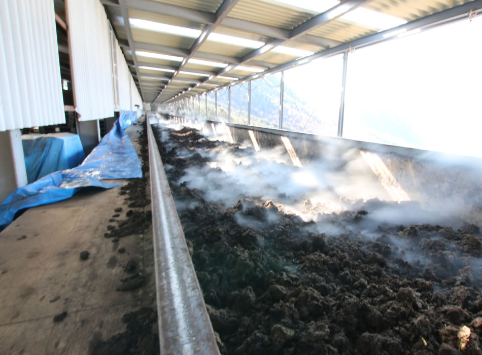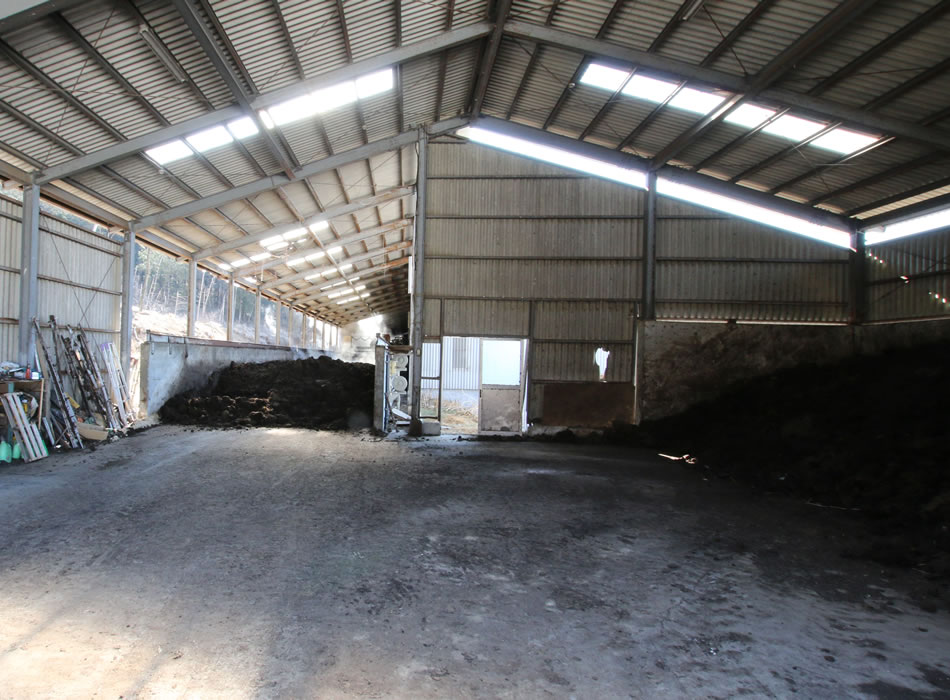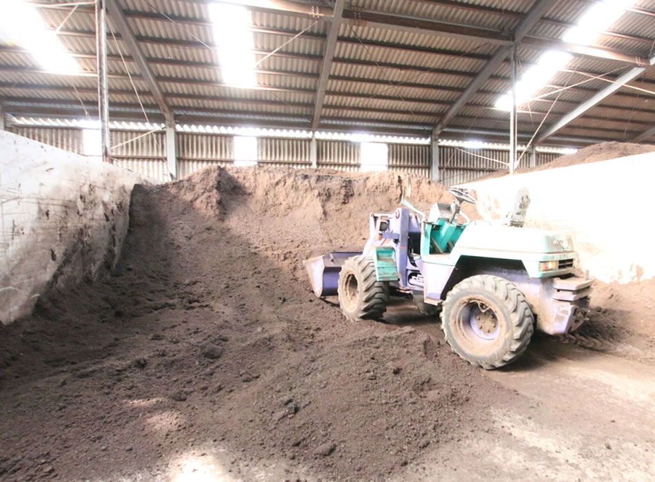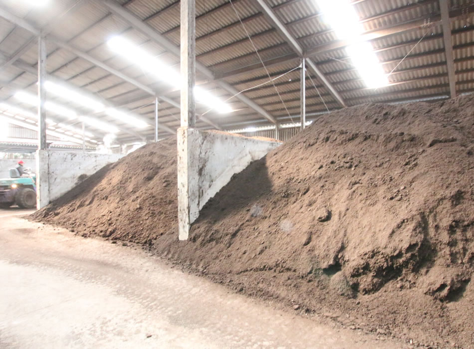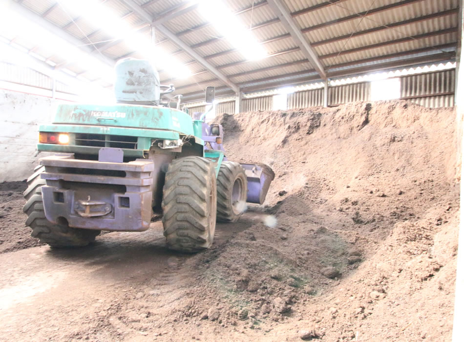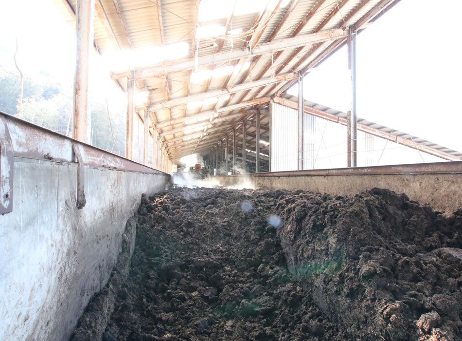 小林牧場では平成13年に施設整備を行いました。牛の飼育頭数の増加に伴い、堆肥の「処理」という考え方から「製造」へと考え方の転機を図る中で、より生産者のニーズに合った良質な堆肥が製造できるようになりました。